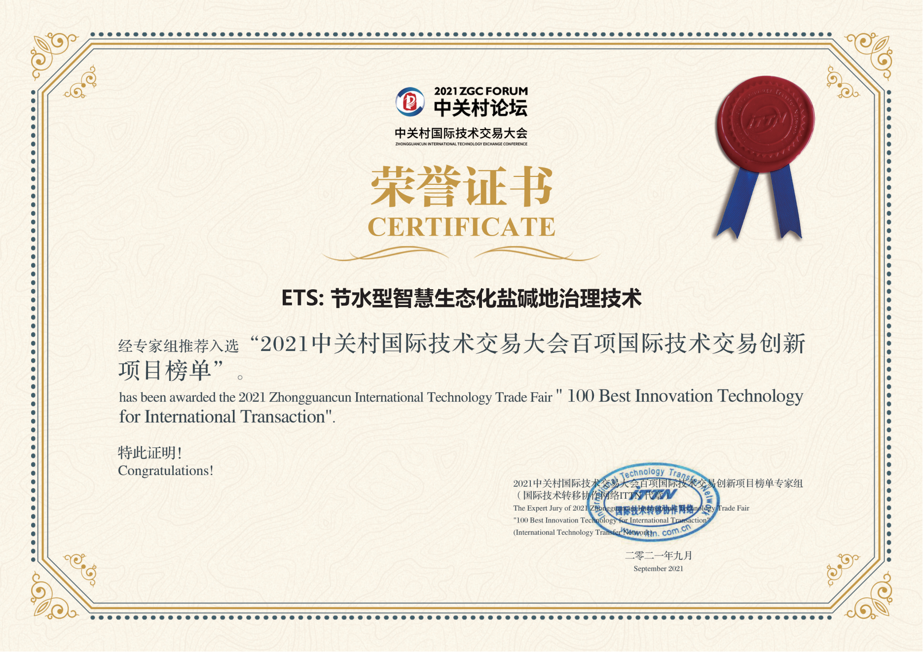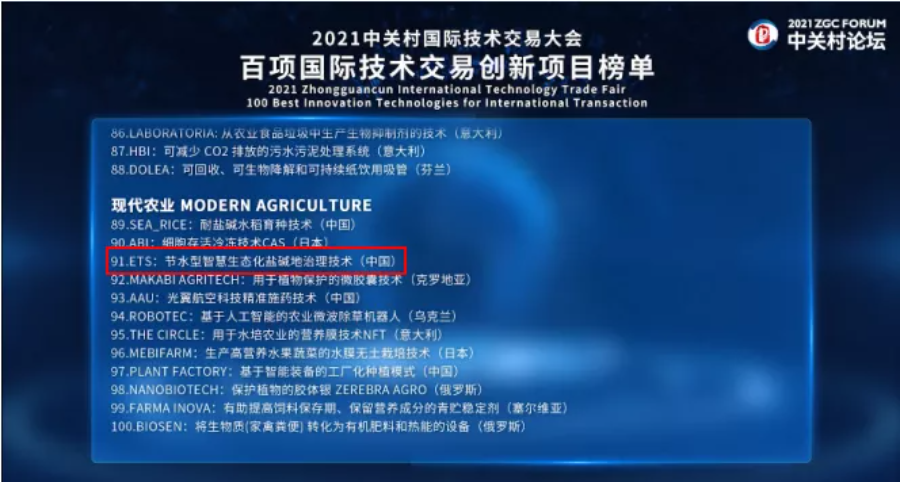 ETS節(jié)水型智慧生態(tài)化鹽堿地治理技術(shù)成功入選